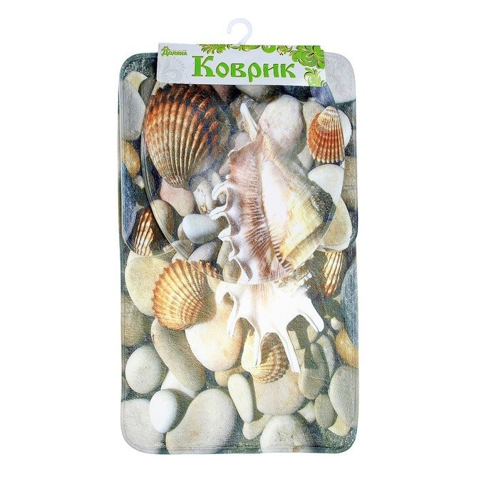 Набор ковриков для ванны и туалета Доляна «Ракушки», 3 шт: 37×45, 37×45, 45×75 см