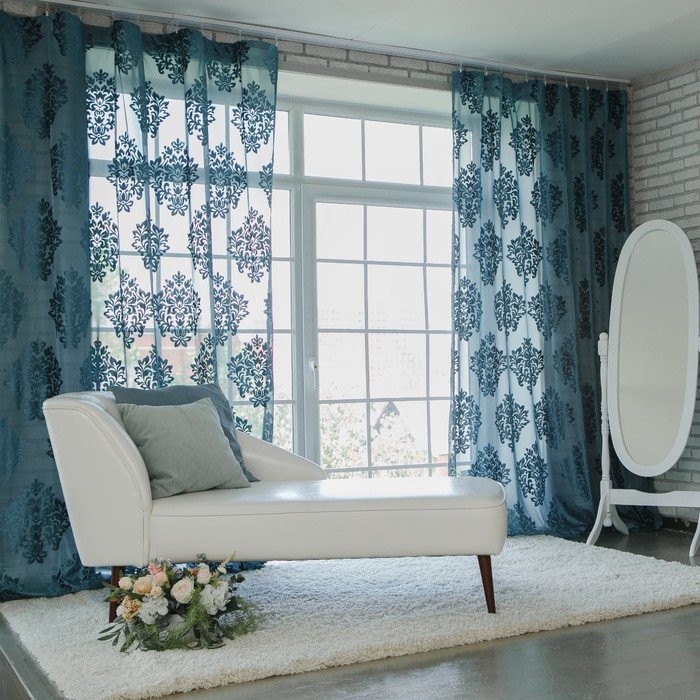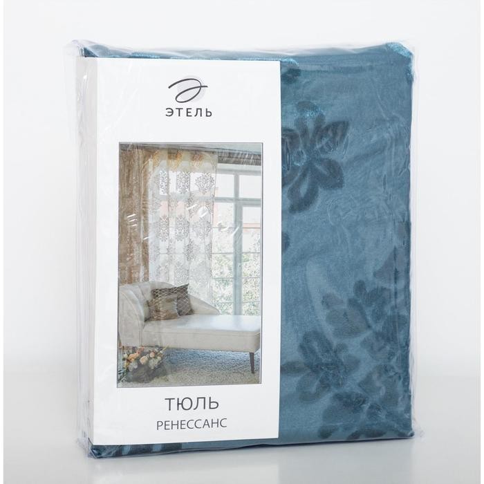 Тюль сетка с бархатом «Этель» 170×265 см Ренессанс Лазурный, 100% п/э