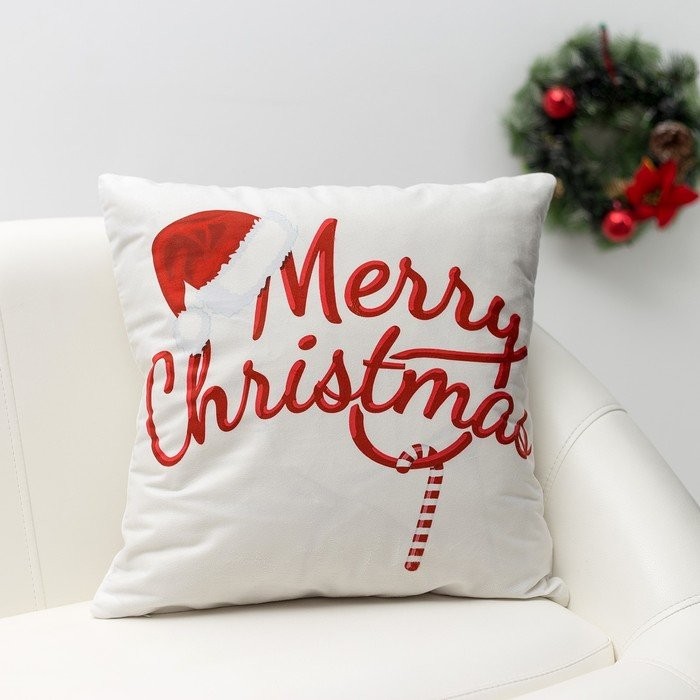 Наволочка Этель «Merry christmas» 42×42 см, велюр