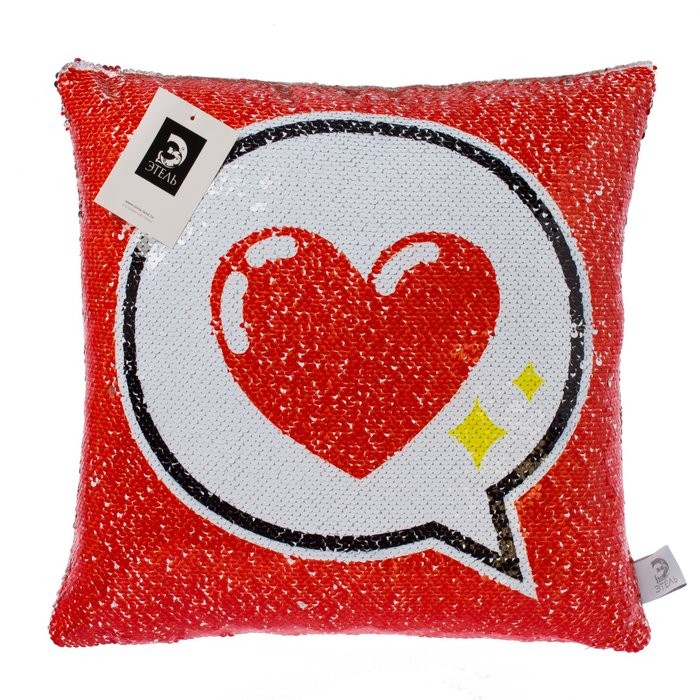 Наволочка с пайетками «Этель» Сердце, 40×40 см, велюр, 100% п/э