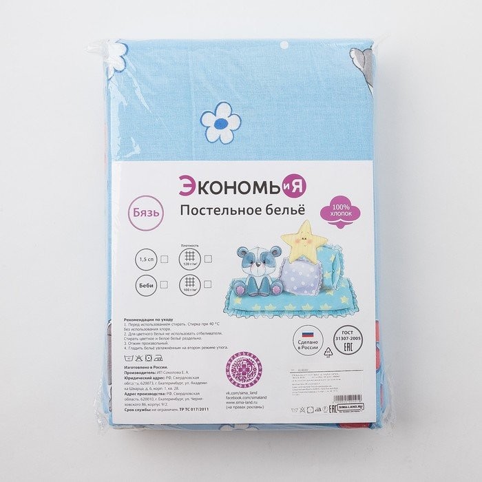 Постельное бельё Экономь и Я 1,5 сп. «Зайки» цвет голубой, 145×210, 150×210, 50×70 см-1 шт, бязь 120 гр/м2