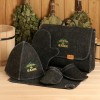 Тапочки из войлока и коврик впитывают влагу и сохраняют сухость, что обеспечивает комфорт во время посещения парной.