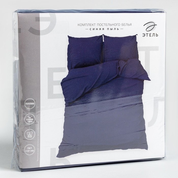 Постельное белье евро «Синяя пыль» 200×217, 240×220, 70×70−2 шт