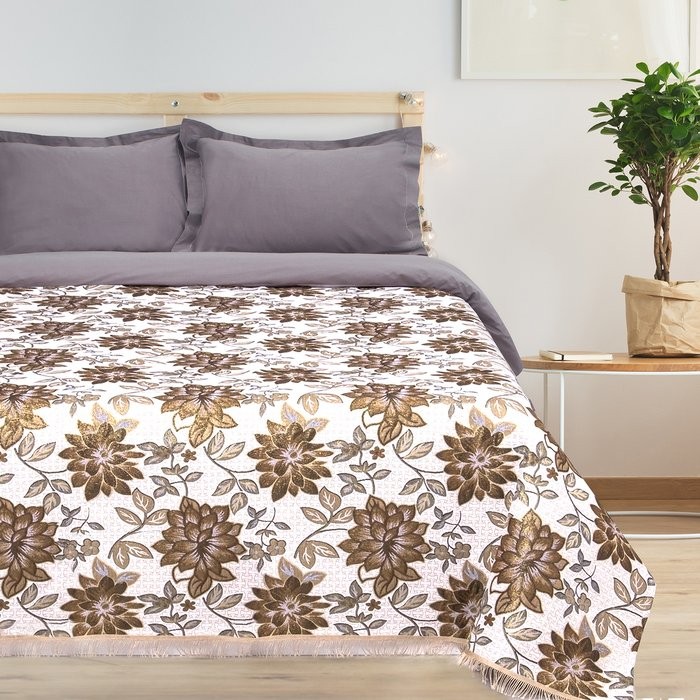 Покрывало гобеленовое Этель «Роскошь» с бахромой, золотой, 140х200см, п/э 80%, хл 20% (450 г/м2)