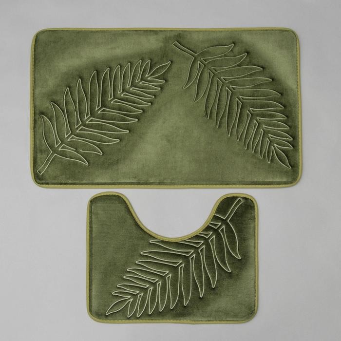 Набор ковриков для ванны и туалета Доляна «Тропики», 2 шт: 40×50, 50×80 см, цвет хаки