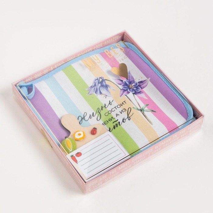Набор подарочный «Жизнь прекрасна» полотенце 40×73 см, прихватка 19×19 см, магнит 11×7 см