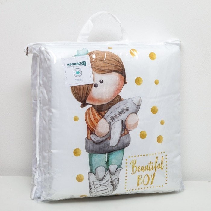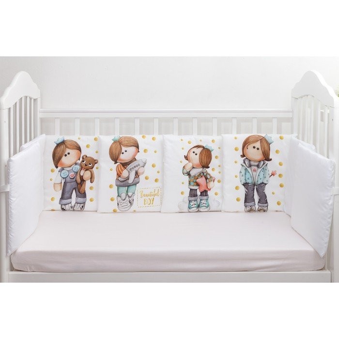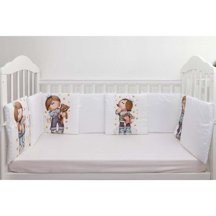 Бортики в кроватку Крошка Я «Принц Тим», цвет белый, 35×35 см-8 шт, сатин