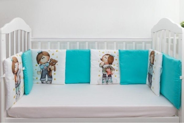 Бортики в роватку Крошка Я «Принц Тим», цвет белый/мятный, 35×35 см-8 шт, сатин