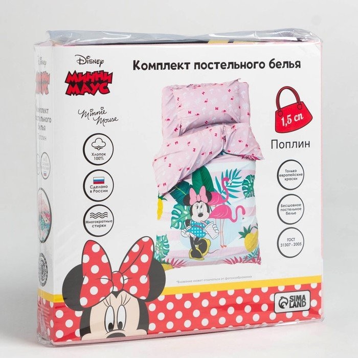 Постельное бельё 1,5 сп «Spring Palms», Минни Маус, 143*215 см, 150*214 см, 50*70 см -1 шт, поплин