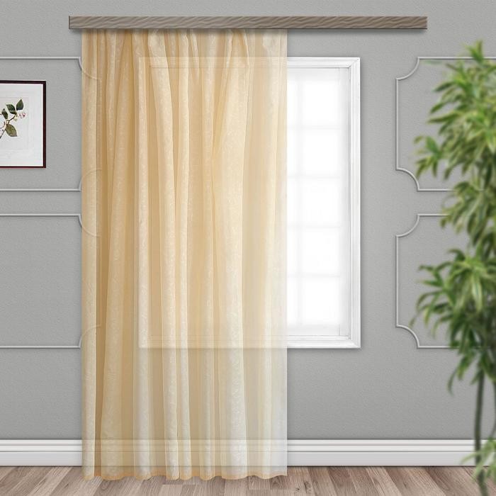 Штора вуаль с тиснением,140×260 см, цвет светло-бежевый, тиснение МИКС