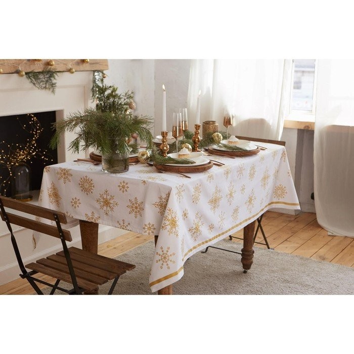 Скатерть «Этель» Золотые снежинки 149х180см, 100%хл, 190г/м2