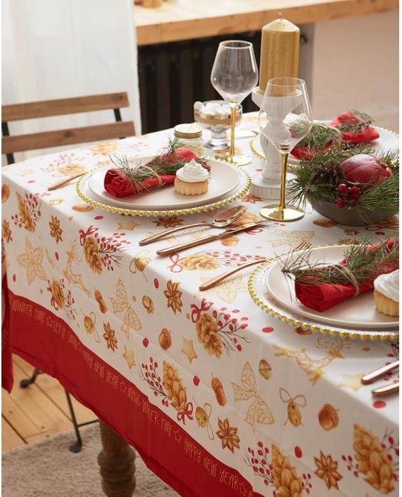 Скатерть «Этель» Golden Christmas 149х250см c ГМВО, 100%хл, 190 г/м2
