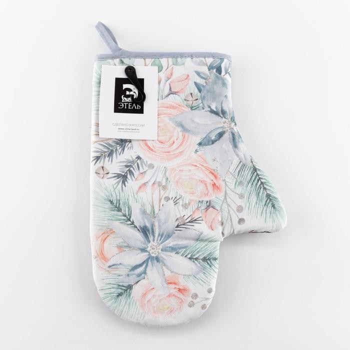 Варежка-прихватка «Christmas flowers» 20х28см, саржа, 100% х/л, ватин 250г/м2