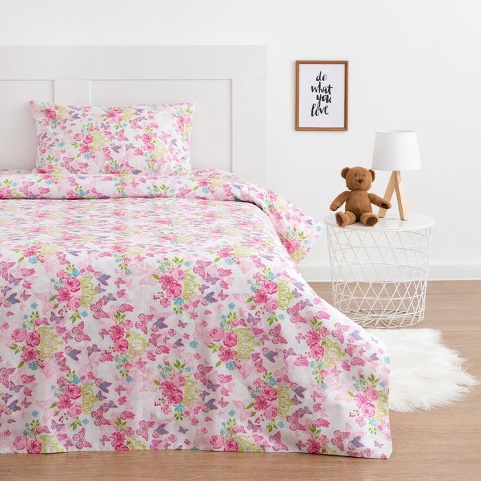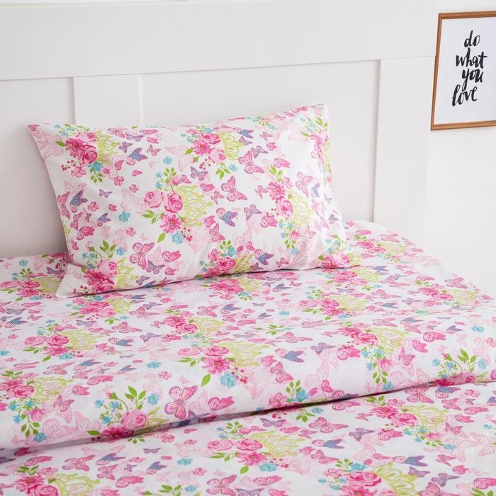 Постельное бельё 1,5 сп Экономь и Я «Нежные цветочки» 145×210, 150×210, 70×70 см-1 шт