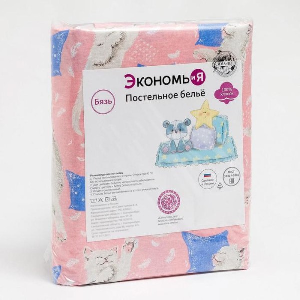 Постельное бельё 1,5 сп Экономь и Я «Котики» 145×210, 150×210, 50×70 см-1 шт