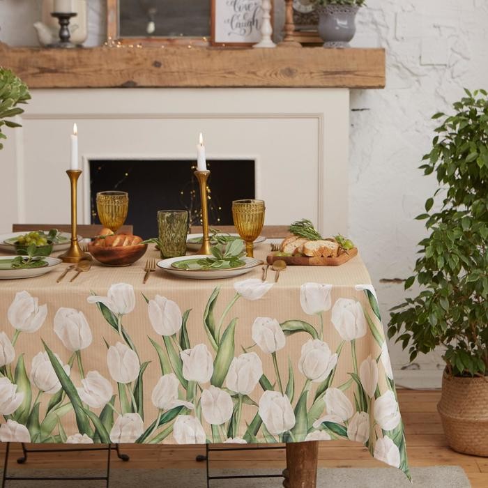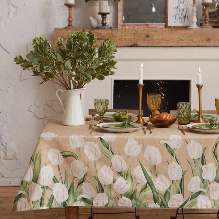 Скатерть «Этель» Белые тюльпаны 149х220см, 100% хл, саржа 190 г/м2