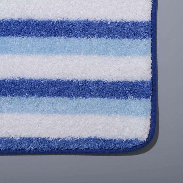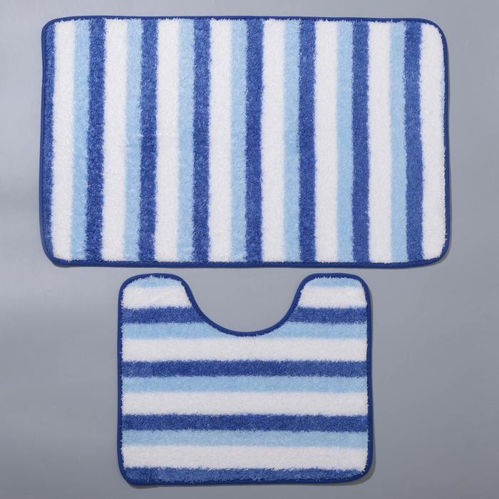 Набор ковриков для ванны и туалета Доляна «Полосатик», 2 шт: 50×80, 40×50 см, цвет сине-белый