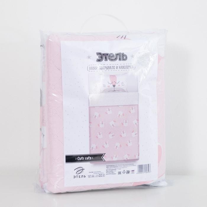 Покрывало детское и наволочка Этель 1,5 сп «Cute cats», 145×210 ±5 см, 40×60 см, микрофибра