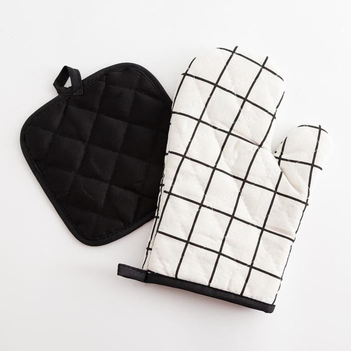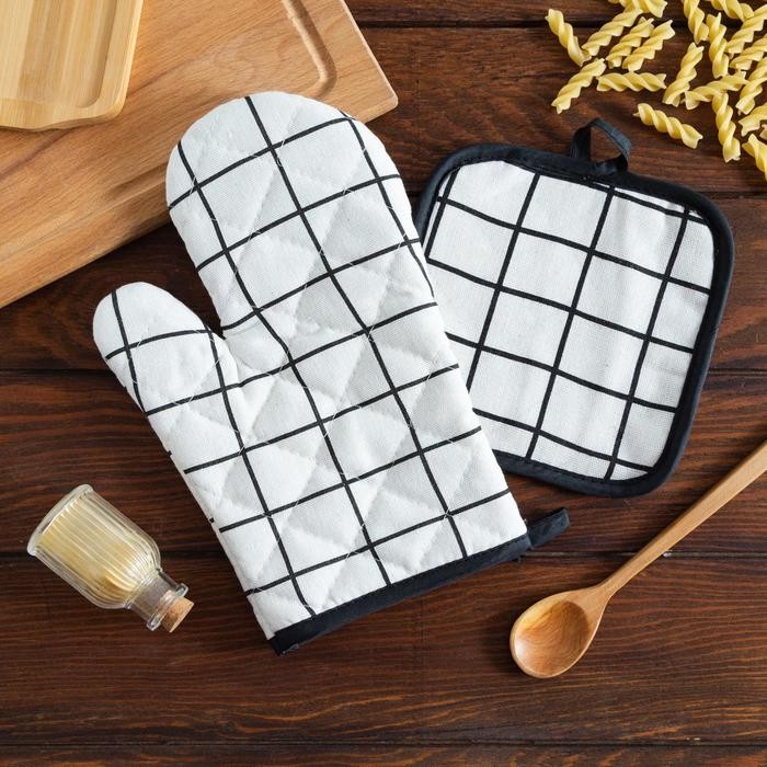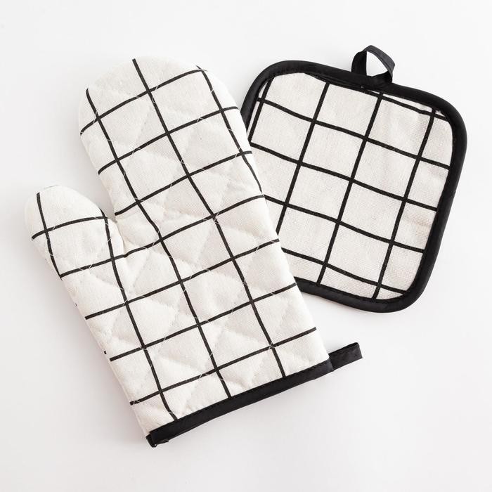 Кухонный набор Доляна «Клетка» цв.белый, прихватка 17*17 см, рукавица 26*16 см,100% п/э