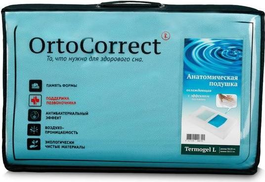 Ортопедическая подушка OrtoCorrect Termogel L, с гелевой вставкой, 58×38, валики 10/12 см