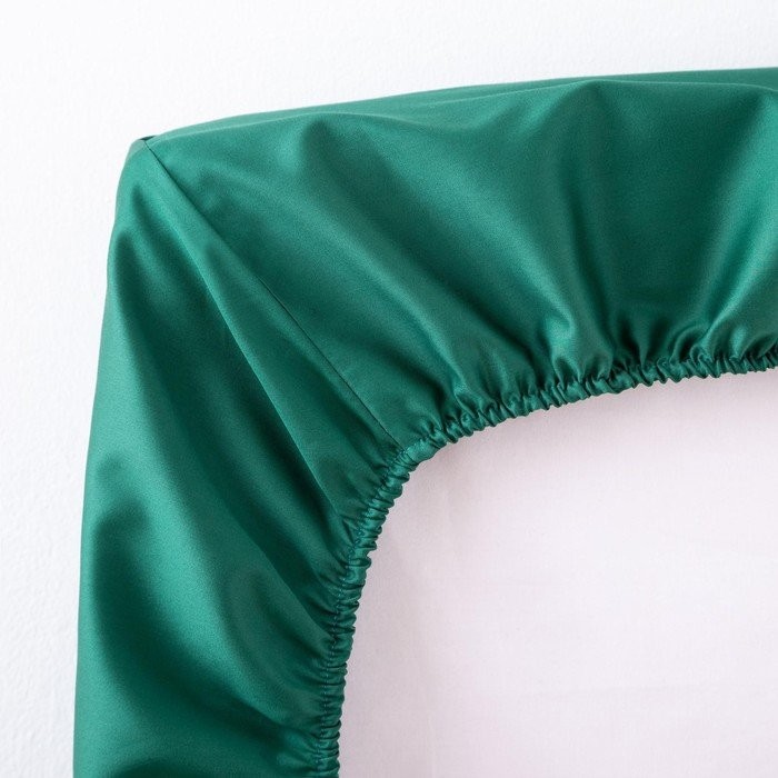 Простыня на резинке Этель 160*200*25 см, цв.изумрудный, 100% хлопок, мако-сатин, 125 г/м²