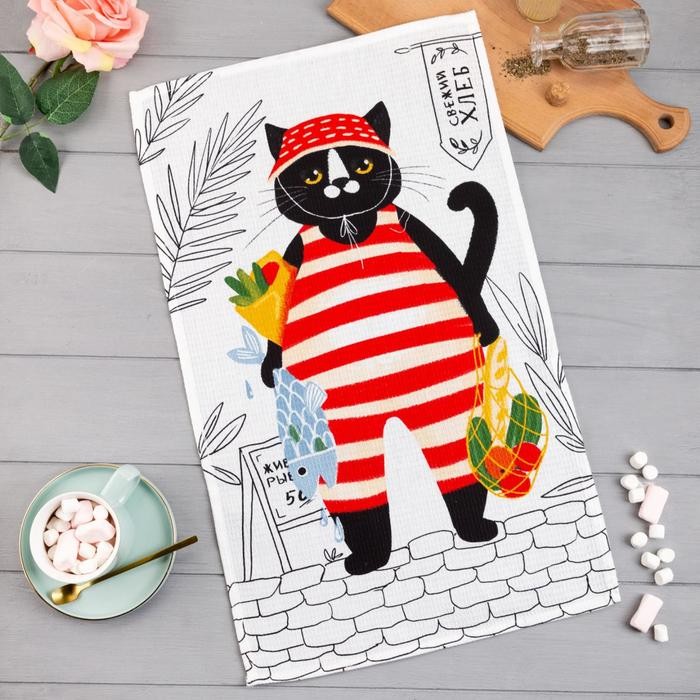 Полотенце кухонное Доляна «Кот» 35×60 см, 100% хл, 160г/м2