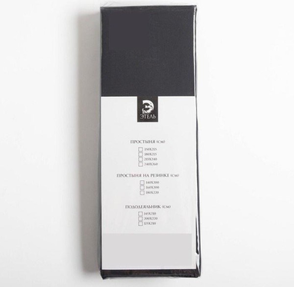 Простыня на резинке Этель 180*200*25 см, цв.черный, 100% хлопок, мако-сатин, 125 г/м²