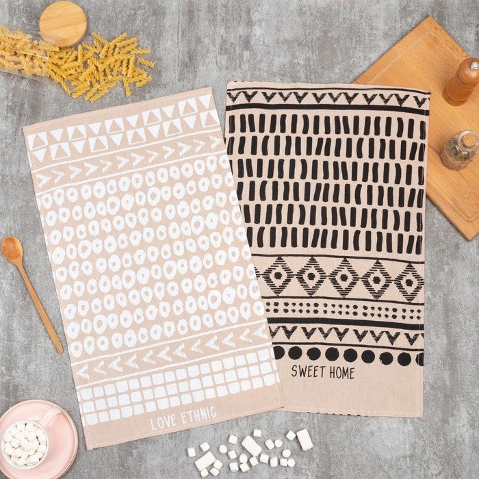 Набор кухонных полотенец Доляна LOVE ETHNIC 35х60см-2шт, 100% хл
