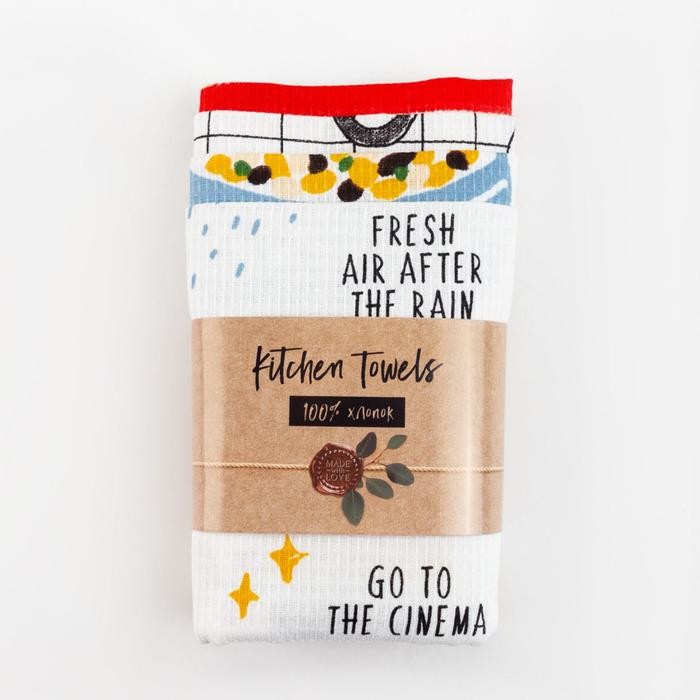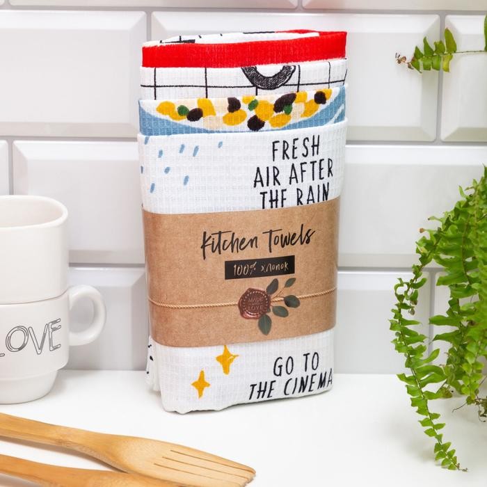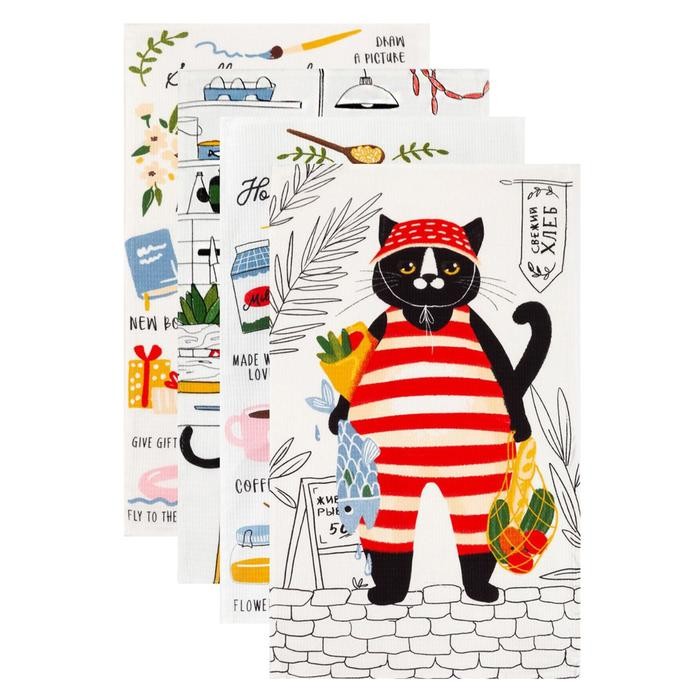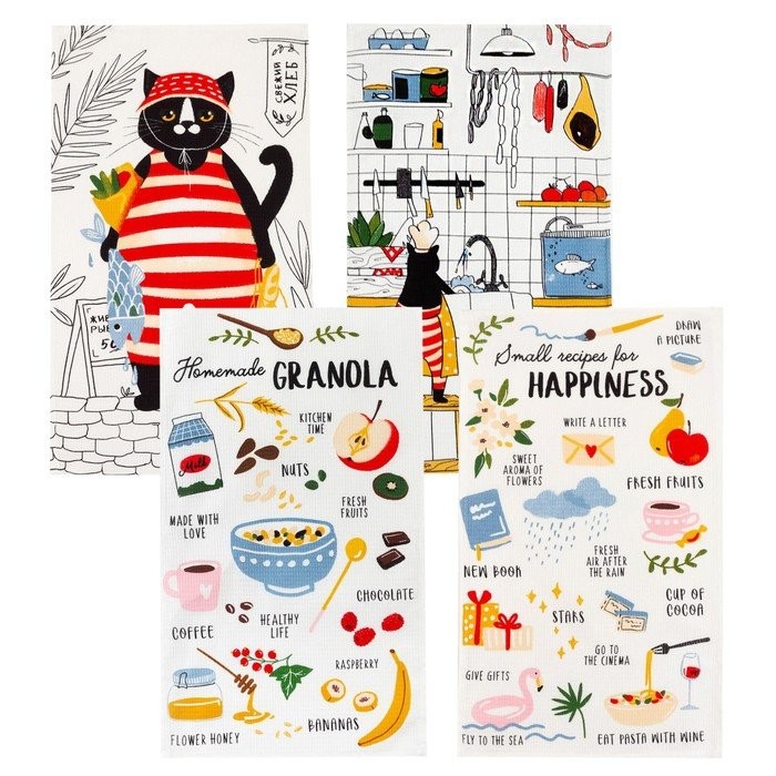 Набор кухонных полотенец Доляна Happiness, 35х60см-4шт, 100% хл
