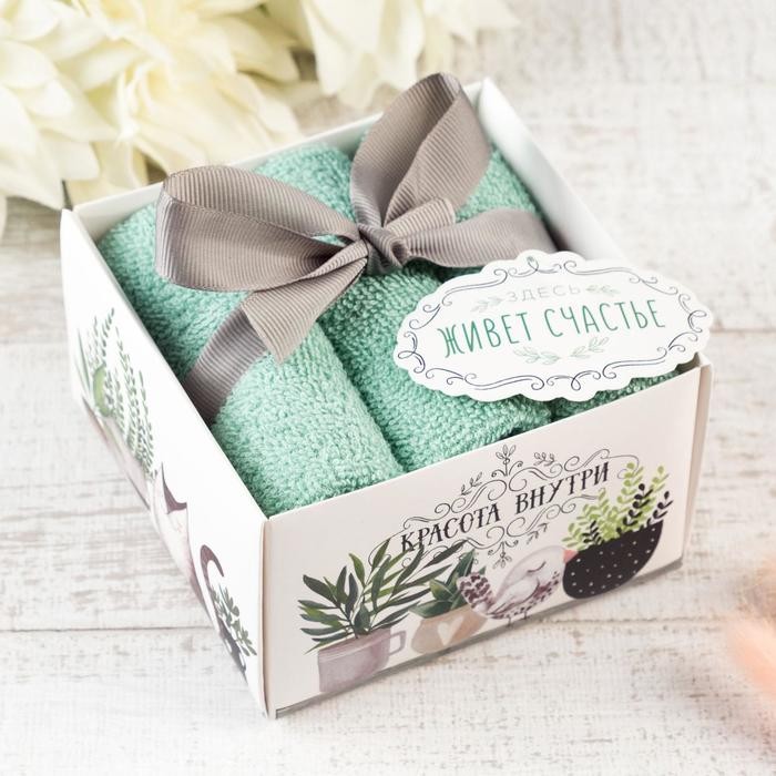 Набор махровых полотенец «Здесь живет счастье» 30×30 см — 3 шт